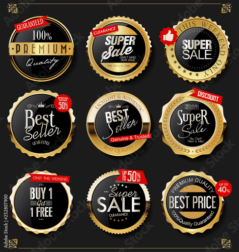 label, icon, badge, signs, vintage, set, sale, stamp, symbol, guarantee, business, quality, tags, banner, design, gold, illustration, star, medal, vector, retro, sticker, buttons, 100, price, gold, premium, luxury, emblem, collection, seal, best, ribbon, badge, award, element