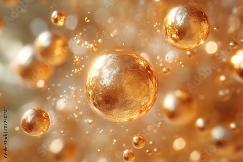 gold, sphere, ball, bubble, amber, light, bokeh, shiny, metallic, luxury, elegant, rich, golden light, floating, design element, glossy, sparkle, shimmer, glow, orange, brown, warm, festive, celebration, modern, contemporary