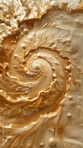 golden spiral in creamy golden thick creamy sugary liquid. crystallization and burning