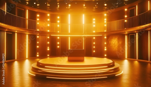 Golden Stage: Illuminated Circular Platform with Neon Lights