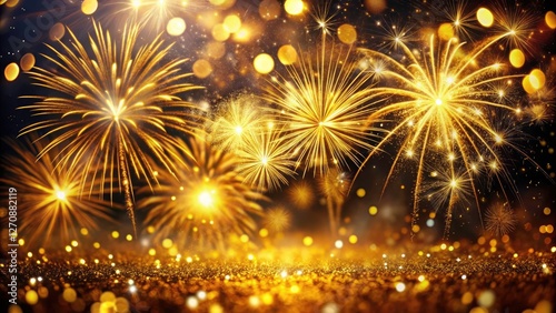 Golden Star Burst Fireworks Bokeh Photography - Night Sky Celebration Images