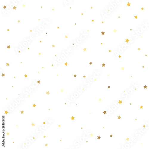 Golden stars on a square background. Gold flying stars confetti magic cosmic christmas vector.