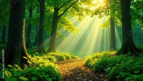 aethereal, mystical, magical, serene, pure, ray, greenery, lush, wood, peaceful, tranquil, shadow, vibrant, sunbeam, sunlight, ecology, foliage, tree, botanical, timberland, gold, canopy, light, wild, clean, dappled, leaf, underbrush, flora, green, bright, nature, environment, spring, natural, summer, fresh, organic, forest, untamed