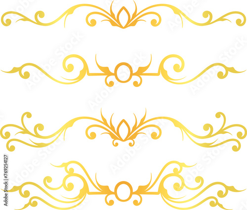 Golden swirl lines calligraphy ornament set isolated on white background for luxury graphic design