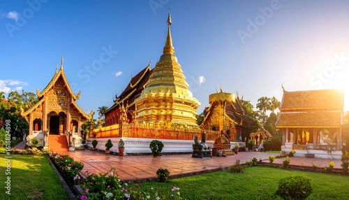 temple, gold, buddhist, architecture, asia, siam, pagoda, sunrise, dawn, serenity, ancient, religion, landscape, serene, exterior, vibrant, colourful, peaceful, exotic, historical, travel, scenic, stunning, majestic, spiritual, beautiful, light, nature