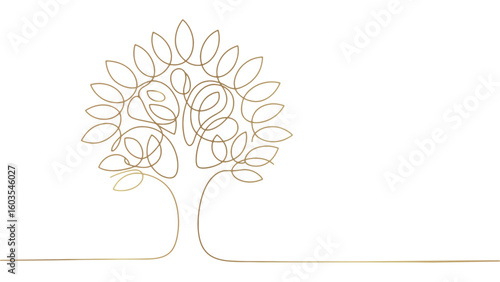 tree, gold, line, art, continuous, drawing, illustration, transparent, background, graphic, design, vector, single, element, symbol, icon, outline, minimalist, elegant, simple, modern, style, isolated, clip art, artwork, decorative, shape, contour, nature, inspired, design, sophistication, plant, growth, life, gold, botanical