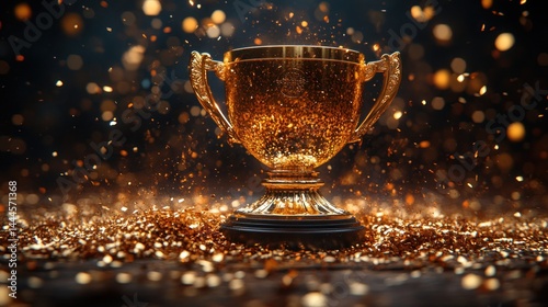 trophy, gold, award, celebration, victory, success, achievement, prize, winner, champion, competition, event, gala, ceremony, triumph, excellence, prestige, honour, glory, accomplishment, recognition, celebratory, gold, sparkle, glistering, confetti, shiny, shining, bright, reward, grateful, winning, best, top, first, place, dais, celebrate