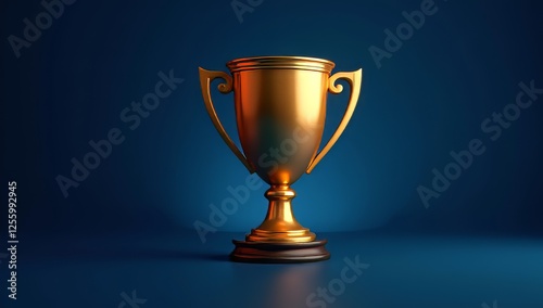 Golden trophy cup dark blue background
