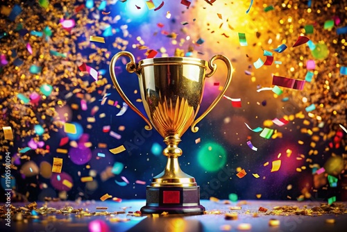 trophy, award, confetti, champion, winner, first place, victory, celebration, achievement, success, prize, competition, winning, tournament, championship, accomplishment, triumph, streamer, gold cup, sport, game, first prize