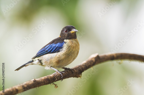 Golden-collared Honeycreeper - Iridophanes pulcherrimus, beautiful rare perching bird from western Andean slopes, Amagusa, Ecuador.