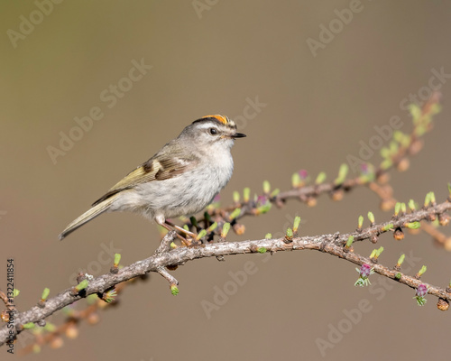 Golden-crowned Kinglet (Regulus satrapa), a very small songbird in the family Regulidae that lives throughout much of North America