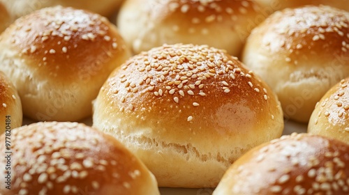Golden-hued bread rolls with a tantalizing crunch adorn a pristine backdrop, their pillowy softness inviting indulgence.