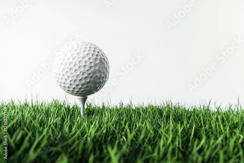golf, ball, tee, grass, green, white, sport, game, leisure, nature, fresh, close, up, sharpened, sharp, realistic, three-dimensional, rendering, still, life, isolated, background, minimalist, simple, design, texture, dim, light, sport, equipment, course, play, competition, skill, precision, activity, fun, relaxation, calm, peace, excellence, achievement, challenge, success, victory, strategy