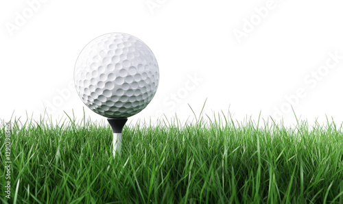 Golf Ball on Tee Surrounded by Lush Green Grass Isolate on Transparent Background
