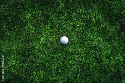 Golf Ball Resting on Green Grass From Overhead View