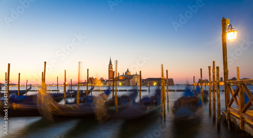 Gondolas at sunrise with San Giorgio di Maggiore church, Venice, Venezia, Italy