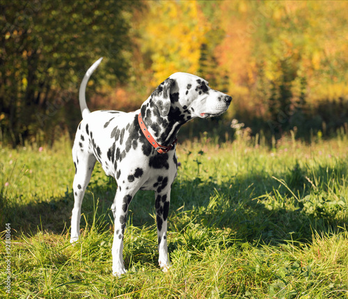 dog, dalmatian, white, black, spotted, nature, park, street, walk, 1, big, healthy, beautiful, delightful, thoroughbred, exhibition, exterior, side, green, grass, grille, grid, tree, waiting, watches, worry, collar, worth, front, sweet, charming, short hair, pretty, boy