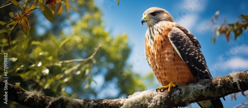Gorgeous Red shouldered Hawk perched in Tampa tree