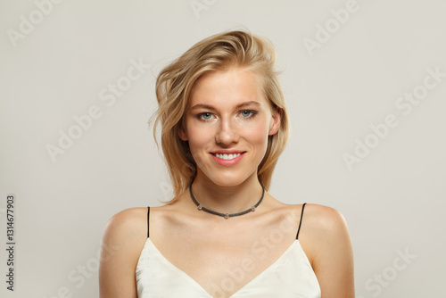 woman, hair, blond, person, beauty, portrait, adult, female, young, beautiful, model, smiling, face, fashion, necklace, jewellery, bijouterie, gold, coiffure, natural, skin, care, white, pretty, happy, lifestyle, style, healthy, smile, happiness, studio, attractive, isolated, cute, glamour, head shot, confidence, photo, cheerful, cosmetic, elegance, gorgeous, trendy, head, blond, look, wavy, make-up
