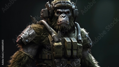 Gorilla dressed as a war soldier. Created with Generative AI.