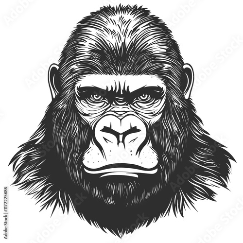 gorilla, intense, graphic design, primate, vintage, art, fierce, white, jungle, illustration, black, graphic, icon, symbol, vignetting, strong, retro, wild, powerful, strength, forest, bold, ape, head, nature, mammal, animal, drawing, portrait, design, line, face, angry, wildlife