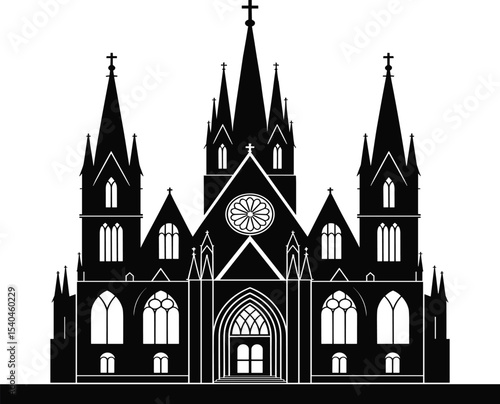 Gothic Cathedral Silhouette Illustration: Majestic Church Architecture with Ornate Details, Ideal for Religious, Historical, and Travel-Themed Designs