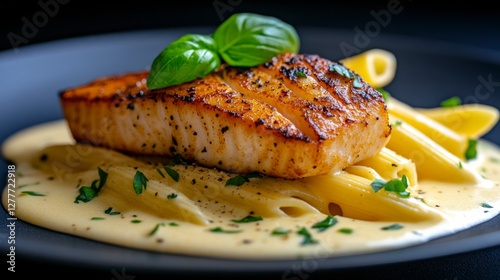 Gourmet Halibut Creamy Pasta Dish Delicious Food Photography