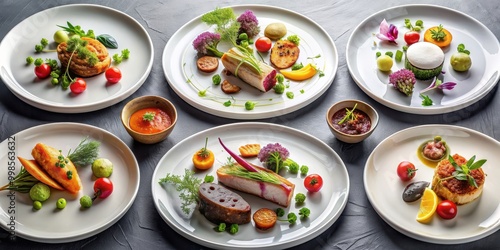 Gourmet plates filled with delicious and beautifully plated dishes, gourmet, plates, delectable, recipes, savor