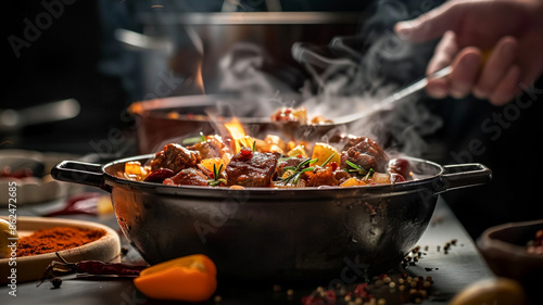 Gourmet stew cooked over natural flame, AI Generative