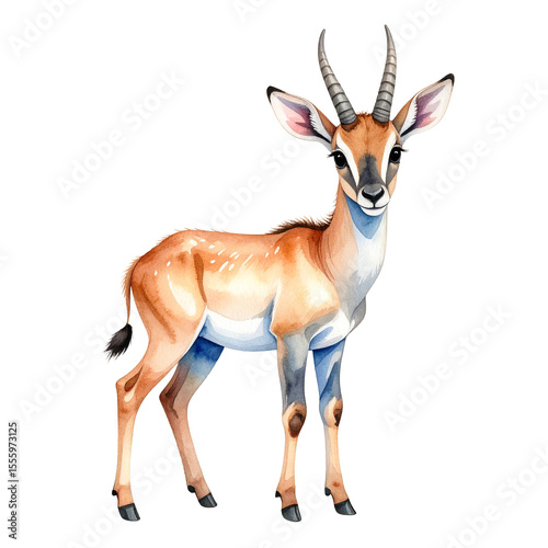 Graceful Gazelle Watercolor: A captivating watercolor painting of a gazelle, with its slender form and elegant horns.