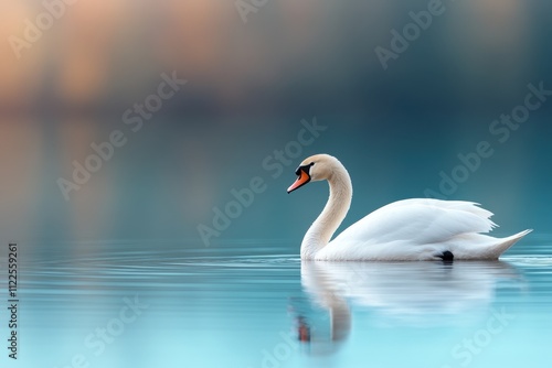 Graceful Swan Gliding on Calm Blue Water with Serene Background