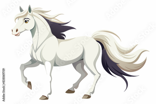 Graceful white horse isolated on white background. Concept of wild animal illustration, minimalist style, elegant stallion. Print, element for design