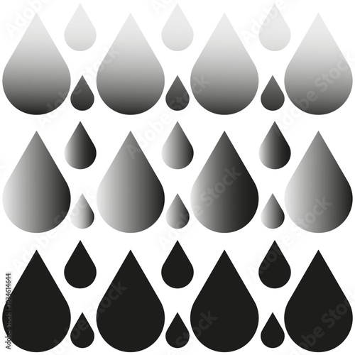 drop, droplet, water, rain, gradient, monochrome, pattern, black, grey, white, icon, vector, shape, abstract, fluid, symbol, collection, design, seamless, background, liquid, simple, minimal, moisture, repetition, texture, raindrop, glossy, smooth, clean, illustration, set, decorative, shiny, transparent, wet, nature, splash, multiple, row, environment, droplet, fluidity