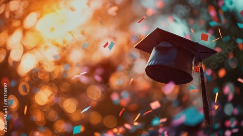 Graduation Cap Soaring Through the Air