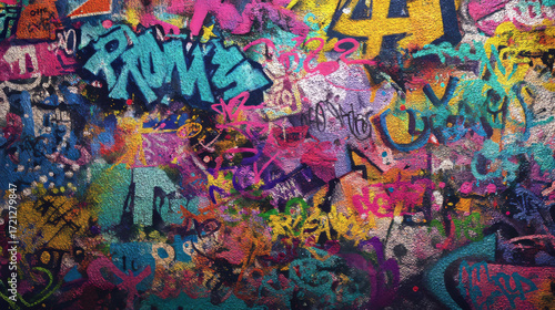 Graffiti wall abstract background with colorful spray paint texture, artistic pop art style backdrop