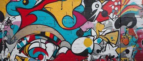 Graffiti wall abstract colorful background. Artist pop art panorama background backdrop