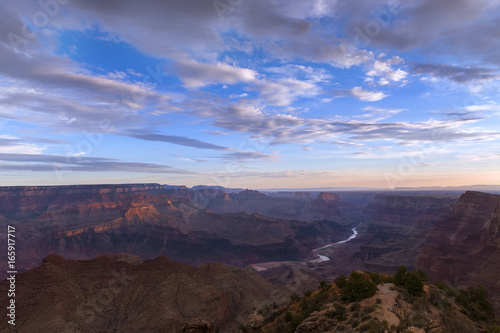 Grand Canyon and the colorado river at sunrise from the Desert View in Arizona; USA; Concept for travel in the USA