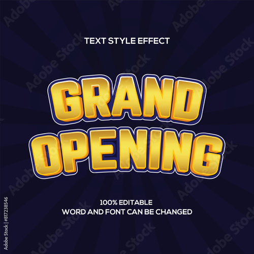 Grand Opening 3D editable text effect template. grand opening on dark blue background.