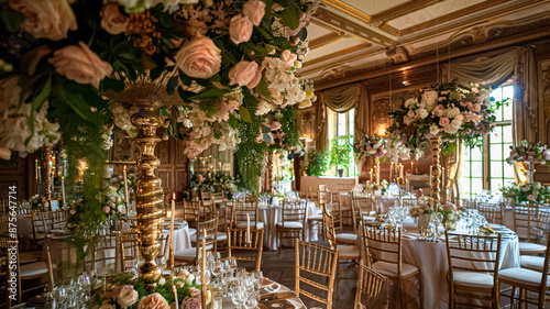 Grand wedding decoration in the country manor, floral decor and event celebration, flowers, wedding aisle and tablescape in the garden, English countryside style idea