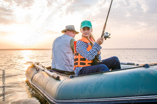children, adult, holiday, grandfather, active, lake, people, family, daughter, lifestyle, woman, person, mist, senior, sunset, together, outdoors, boat, beautiful, water, nature, fishing, happy, granddaughter, fishing boat