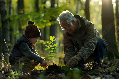 grandfather, grandson, planting, tree, forest, nature, environment, sustainability, bequest, generation, bonding, togetherness, teaching, learning, growth, new life, hope, future, connection, heritage, tradition, adventure, wildlife, conservation, ecosystem, boy, children, children