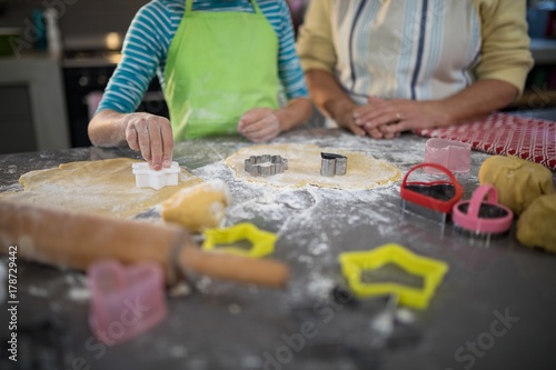 Grandmother and granddaughter cutting dough with a cookie cutter