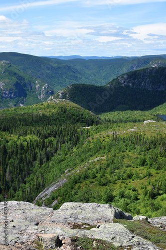 Grands-Jardins Sepaq National Park, Quebec, Canada: View from the peak of Mont du Lac-des-Cygnes on a summer sunny day