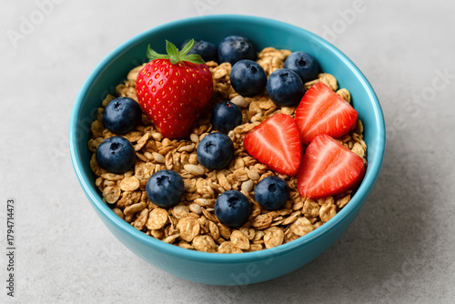 granola, with, strawberry, and, blueberry, in, a, blue, bowl, breakfast, fresh, healthy, food, photo, morning, fruit, ripe, colourful, crunchy, oat, cereal, snack, natural, texture, wholesome, nourishment, vibrant, red, colours, edible, delicious, tasty, alimentary, energy, mood, lifestyle, kitchen, home, daylight, closeup, berry, berry, fruit, harvest, summer, freshness