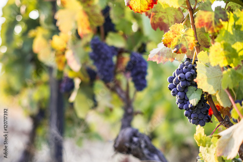 Grapes ripening in the sun at a vineyard in the Alto Douro region, Portugal