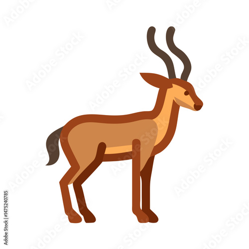 gazelle, animal, mammal, wildlife, africa, antelope, horn, brown, flat, illustration, graphic, standing, isolated, simple, minimalist, design, fauna, safari, nature, wild, zoo, herbivore, savanna, horn, african, vector, artwork, art, line art, isolated object, clip art, icon, silhouette, cartoon, desert, ungulate