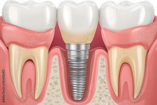 Graphic layout for dental implant to replace missing tooth and restore smile in 8K resolution