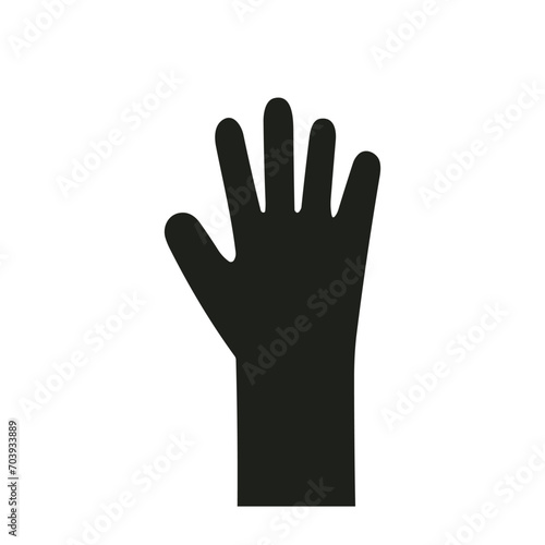 Graphic vector drawing of a black hand with open fingers on a white background.