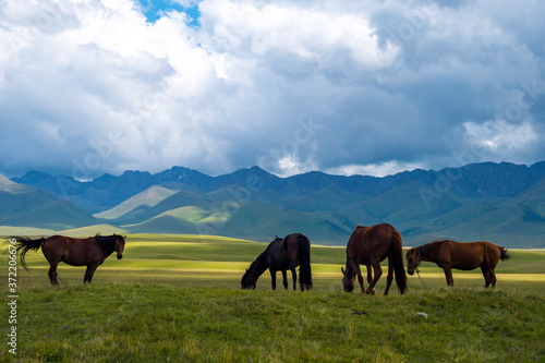 travel, animal, tour tourism, brown, beauty, mountain, fast horse, outdoors, mare, scene, country, horse, freedom, agriculture, adventure, high, cloud, range, horse, tranquil, vale, landscape, mountain, pasture, field, summer, nature, background, green, farm, sky, view, grass, meadow, panorama, grazing, beautiful, spring, scenic, rural, cloud, countryside, farmland, asia