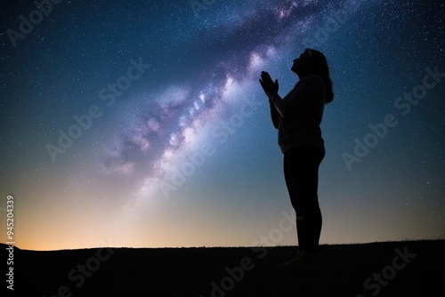 soul, prayer, starry sky, shadow, earth, digital artwork, faith, spirituality, devotion, symbolism, contemplation, calmness, hope, worship, oneness, transcendence, belief, star, gratitude, serenity, silence